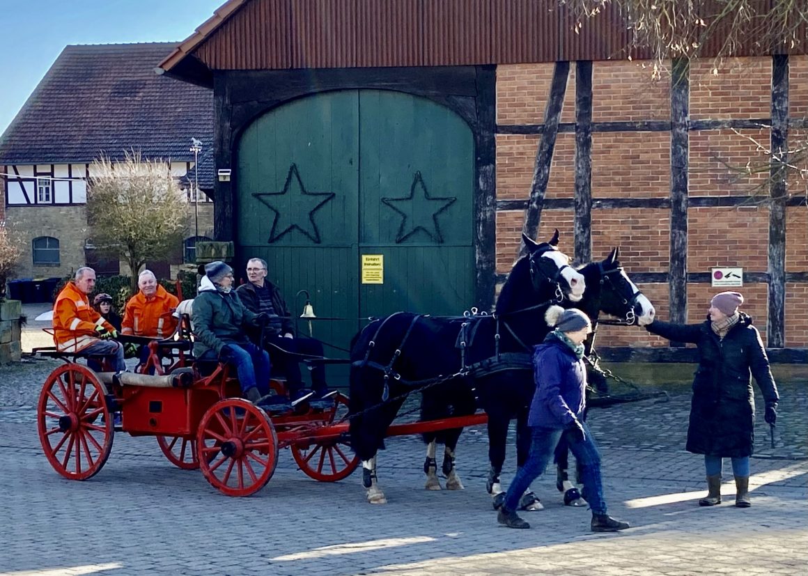 Werlaburgdorf. Wenn alles klappt, dann wird der 6. März 2026 ein Tag, der in die Werlaburgdorfer Dorfgeschichte eingeht: Wohl kein noch lebender Einwohner des Ortes an der Warne dürfte die aus dem Jahr 1896 stammende Pferdespritze der Freiwilligen Feuerwehr je mit Pferden bespannt erlebt haben. 130 Jahre nach der Beschaffung des historischen Gefährts für die bereits zwei Jahre zuvor gegründete Burgdorfer Wehr wird jetzt das sogenannte Kleine Spritzenhaus eingeweiht, das der Feuerwehrverein seit Sommer des vergangenen Jahres mit finanzieller Unterstützung des Zukunftsfonds Asse errichtet hat. Gezogen wird die Spritze von Wenzel und Kalli, zwei Welsh Cob D von Janine und Friederike Moder. Die Generalprobe vor wenigen Tagen hat gut funktioniert; die Tiere sind sowohl mit Straßenlärm, Musik und Fackeln als auch der originalen Einsatzglocke der Spritze vertraut, denn die Moders haben vorab schon fleißig mit ihren beiden Tieren trainiert.