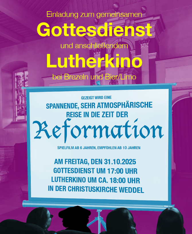 Weddel.deVeranstaltungen / Termine Ankündigung Reformationstag Kino Von Event-Team - Okt. 10, 2025 125 FacebookTwitterPinterestWhatsApp Kirche