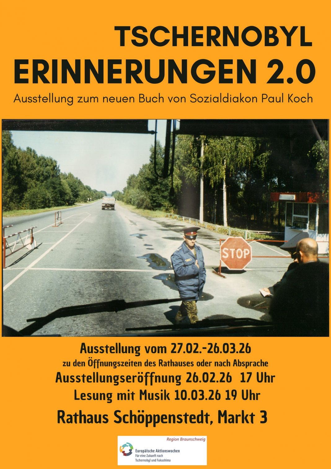 Die „Europäischen Aktionswochen für eine Zukunft nach Tschernobyl und Fukushima“ in der Region Braunschweig haben für die diesjährigen Jahrestage (15 Jahre Fukushima / 40 Jahre Tschernobyl) ein reichhaltiges Programm aufgestellt. Der Auftakt dazu findet im Rathaus Schöppenstedt mit einer Ausstellung und einer Lesung mit Musik statt.