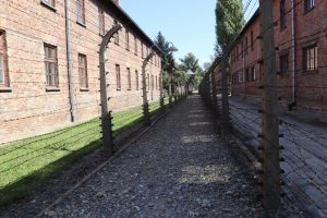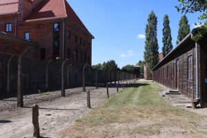 Am dritten Tag unserer Fahrt fuhren wir dann nach Oswiecim/Auschwitz. Was wird uns erwarten? Je näher wir dem Ort kamen, desto ruhiger wurde es im Bus. Unsere Führung begann im Stammlager Auschwitz I (Mai 1940-Januar 1945). Hier war das Verwaltungszentrum des gesamten Komplexes (Auschwitz II=Birkenau, Auschwitz III=IG-Farben/Buna-Werke) – außerdem gab es noch 47 Nebenlager. Die verkehrstechnisch günstige Lage sowie die Nähe zu Sand- und Kiesgruben gaben den Ausschlag für diesen Standort. Wir betraten das Lager durch das Tor mit der zynischen Überschrift „Arbeit macht frei“. Die gut erhaltenen Gebäude waren ursprünglich Kasernen der polnischen Armee. Heute befinden sich in einigen Gebäuden akribisch sortierte Besitztümer ermordeter Menschen: u.a. Brillen, Schuhe, Haare, Koffer, Kinderwagen.