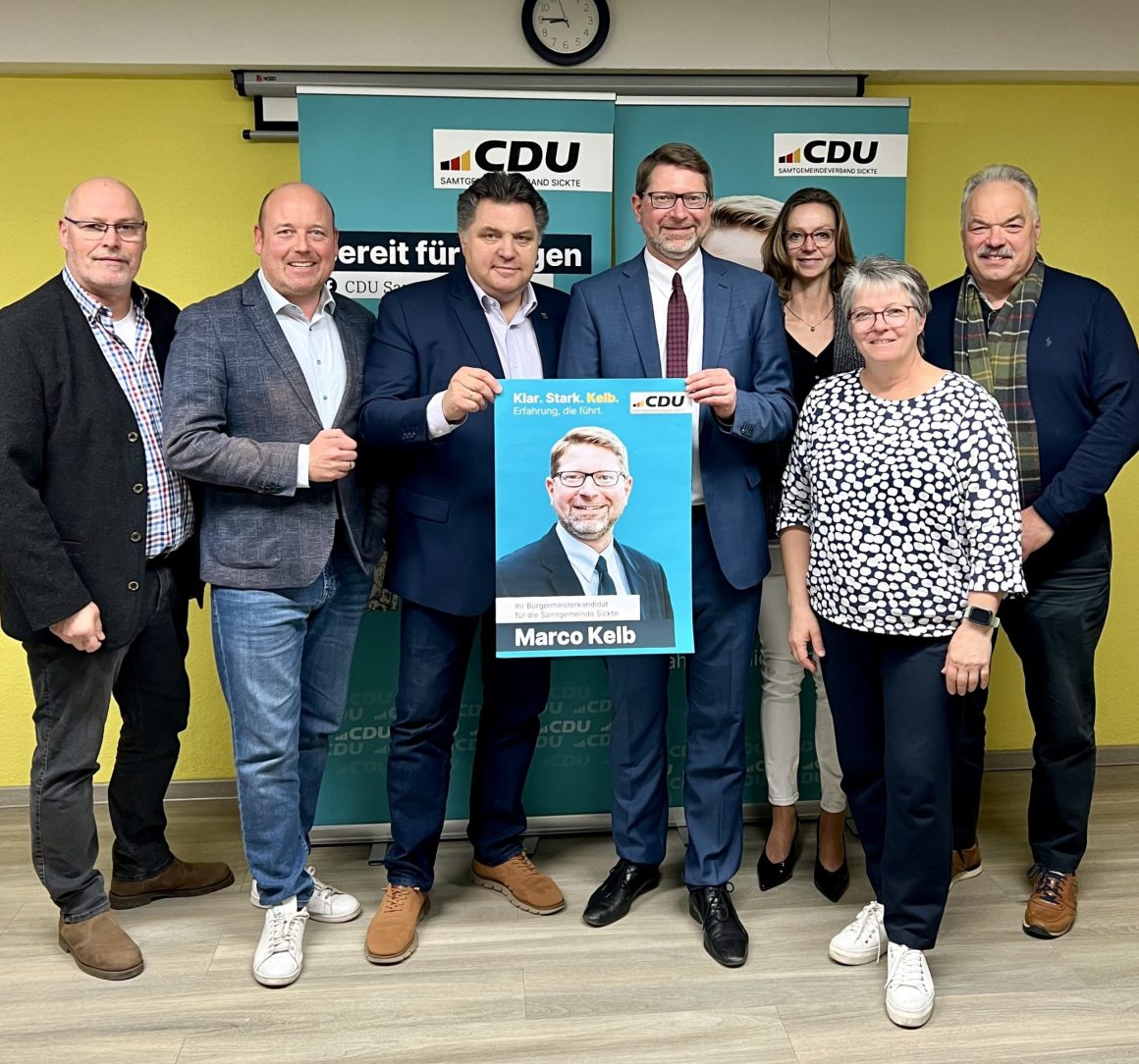 Der 44-jährige Diplom-Verwaltungsbetriebswirt (FH) ist seit dem 29. März 2020 Samtgemeindebürgermeister und bewirbt sich nun um eine zweite Amtszeit. Der Vorsitzende des CDU-Samtgemeindeverbandes Sickte, Uwe Schäfer, würdigte Kelbs Arbeit: „Mit seiner fachlichen und sozialen Kompetenz führt er die Verwaltung erfolgreich und motiviert seine Mitarbeitenden. Er ist nah bei den Menschen und setzt sich mit großem Engagement für die Samtgemeinde ein.“