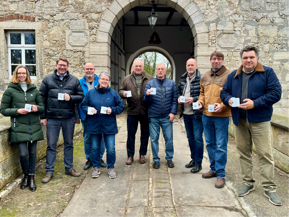 Foto: CDU-Vertreter aus der Samtgemeinde Sickte und ihren Mitgliedsgemeinden freuten sich bei einem Ortstermin in Veltheim über die Vorstellung der „UNIONS-Tassen“: von links nach rechts: Michaela Reuper (Sickte), Marco Kelb (CDU-Samtgemeindebürgermeisterkandidat), Karsten Ansorge (Erkerode), Susanne Wolff (Evessen), Dr. Albrecht Stahlmann (Veltheim/Ohe), Konrad Gramatte (Dettum), Ingo Geisler (Sickte), Thorsten Pabst (Dettum), Uwe Schäfer (CDU-Samtgemeindeverbandsvorsitzeder)