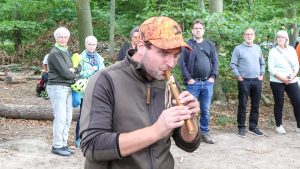Sehr nah am Tagesablauf in der Waldkita eröffnete Paul Pukropski mit Flötenspiel.