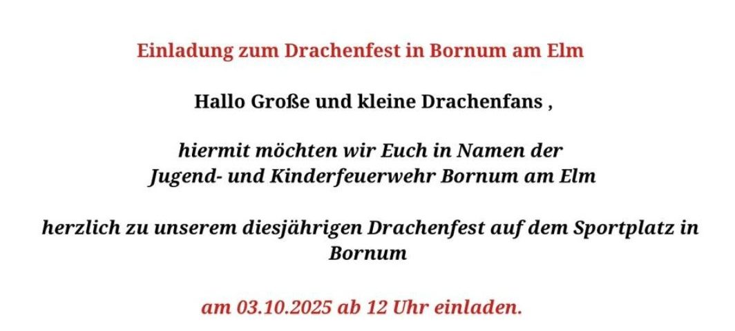 Königslutter.onlineVeranstaltungen / Termine Drachenfest Bornum am Elm Von Event-Team - Okt. 2, 2025 73 FacebookTwitterPinterestWhatsApp