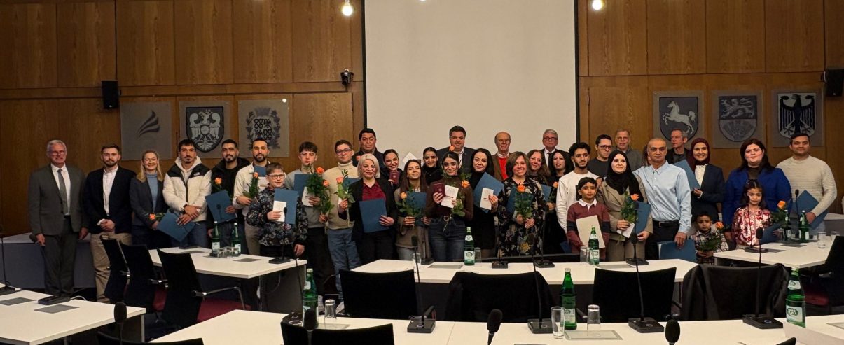 Während einer Einbürgerungsfeier im Großen Sitzungssaal des Landkreises Wolfenbüttel am 18. Februar 2026 haben 22 Erwachsene und vier Kinder die deutsche Staatsbürgerschaft erhalten. Zuvor bekannten sich die neuen Bürgerinnen und Bürger zum Grundgesetz. Ihre Einbürgerungsurkunden erhielten sie aus der Hand des stellvertretenden Landrats Uwe Schäfer.