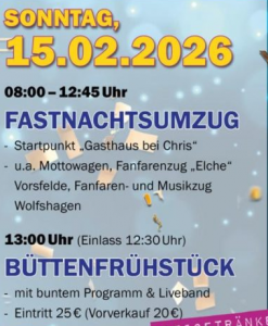 Hier gibt es wieder genügend Zeit die Umzugswagen und die Gruppen zu bestaunen. Anschließend geht es dann zum Büttenfrühstück in die Sporthalle.
