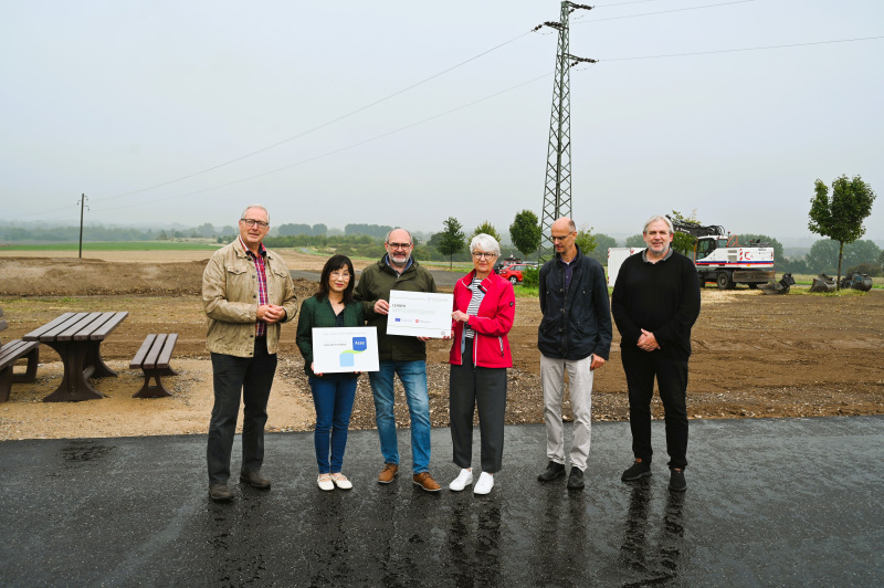 Titelfoto: v.l. FrankOesterhelweg (Platzhirsch vor Ort), Sashuang Li (Bauleitung vom LK), Sven Volkshirsch (Dezernent LK), Christina Steinbrügge ( Landrätin), Martin Blaich (LD NDS) und Dr. Hennig Zettler (Leiter Geopark)