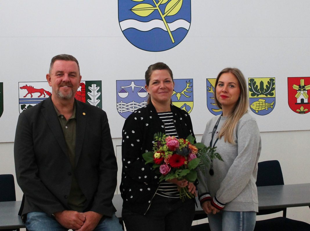 Foto (© Gemeinde Lehre): Die Gleichstellungsbeauftragte der Gemeinde Lehre Lisa-Marie Westphal(rechts) begrüßte ihre neue Stellvertreterin Anna Hagencord gemeinsam mit Bürgermeister Andreas Busch.