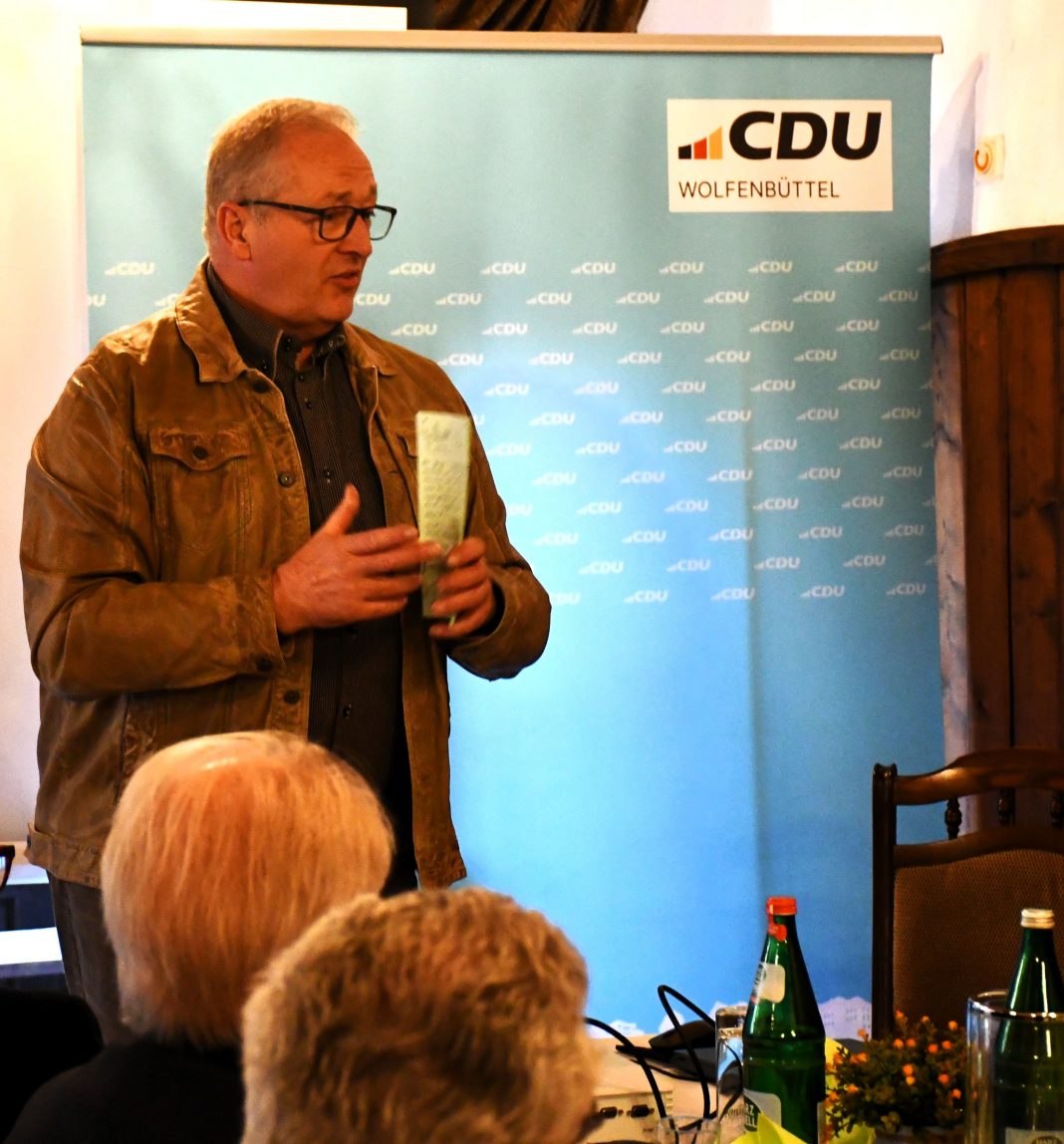 CDU-Fraktionsvorsitzender Michael Wolff begrüßt die Gäste aus dem Landkreis. Foto: Andreas Meißler