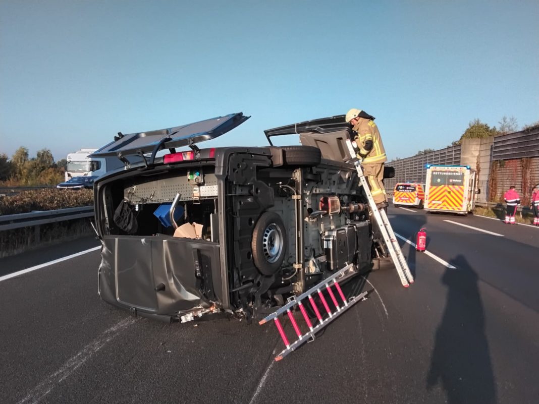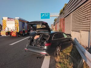 Beteiligt waren an dem Unfall ein Audi und ein VW Crafter. Der Crafter lag auf der linken Fahrspur auf der Fahrerseite, der Audi war am rechten Fahrbahnrand in die Leitplanke gefahren.