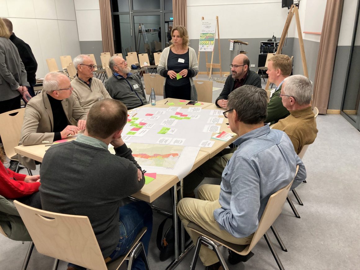 Landwirtinnen und Landwirte, Kommunalvertreterinnen und -vertreter, Verbände sowie interessierte Bürgerinnen und Bürger nutzten die Veranstaltungen für intensive Gespräche, kritische Nachfragen und konkrete Ideen. Besonders in der Visions-Werkstatt entstanden an den Arbeitstischen einige starke Ansätze – von dezentral umsetzbaren Maßnahmen einzelner Betriebe bis hin zu kooperativen und kommunalen Lösungswegen. „Wasserrückhalt, Bodenschutz, Katastrophenschutz und regionale Wertschöpfung sollten von Anfang an ganzheitlich zusammen gedacht werden.“, eröffnete Samtgemeindebürgermeister Marc Lohmann die Arbeitsphase an den Tischen.