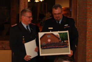 Dem ehemaligen Ortsbrandmeister Horst Kirsch wurde für seine langjährige Tätigkeit eine Ehrenurkunde und Präsente überreicht. Nach zahlreichen Gruß- und Dankesworten der Vertreter von Feuerwehr und Politik klang der Abend mit einem Essen und netten Gesprächen aus.