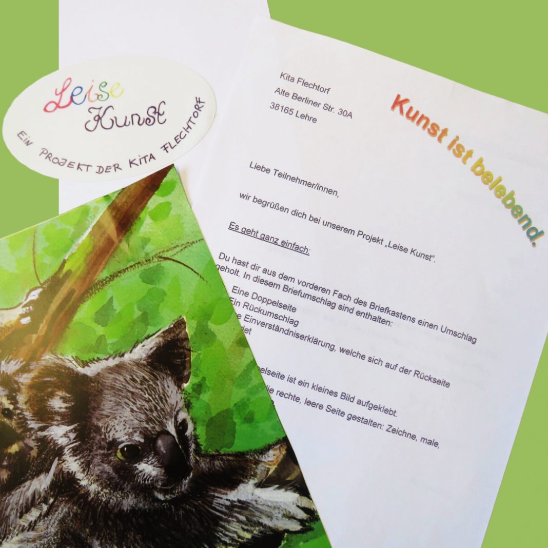 Die Idee hinter der „Leisen Kunst“ ist ebenso einfach wie charmant: Vor der Kita Flechtorf hing ein Briefkasten mit vorbereiteten Umschlägen. Wer mitmachen wollte, hat sich einen Umschlag genommen und sich von dessen Inhalt inspirieren lassen. Daraus gestalteten die Teilnehmenden jeden Alters ihre Kunstwerke. Die fertigen Arbeiten wurden dann anschließend wieder in den Briefkasten gelegt.