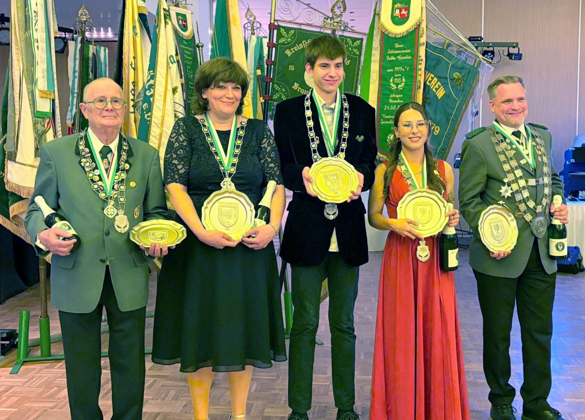 Kreiskönigin oder Kreiskönig zu werden bedeutet in diesem Wettkampf, den besten Teiler im gesamten Braunschweiger Land zu erzielen. Das ist eine besondere Auszeichnung für die treffsicherste Schützin oder den treffsichersten Schützen des Jahres. Zunächst übergab Timur Lodyga aus Weddel als amtierender Kreiskönig seine Königskette. Anschließend folgte die mit Spannung erwartete Bekanntgabe der neuen Kreismajestäten.