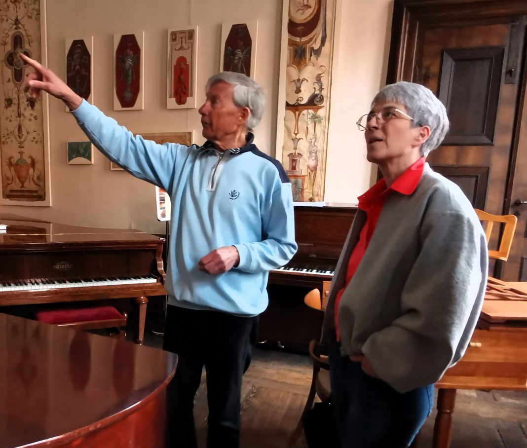 Titelfoto: Professor Dr. Christoph Helm zeigt Kerstin Glier die Grotesken-Malereien von Heinrich Heinemann. Foto: Andreas Meißler