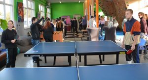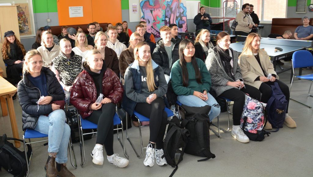Künftig kommen die Studierenden also einmal pro Woche zu Lavie, wo dann vier Stunden Arbeit angesetzt sind. „Es geht nicht zuletzt um das Miteinander und das Ausprobieren“, verdeutlichte Korte. „Wir wollen mit viel Spaß schöne Projekte auf die Beine stellen.“ Das ging am ersten Tag schon gut los, als alle in der Boulderhalle die vier Stationen einmal durchlaufen mussten (Darten, Kicker, Tischtennis, Klettern). Dabei agierte die Lavie-Gruppe als Einweiser in die Spiele – und übernahm diese Rolle mit zunehmendem Eifer.