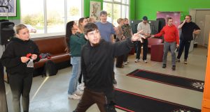 Am ersten Tag stand natürlich das Kennenlernen im Vordergrund – und zwar der Menschen ebenso wie der technischen Möglichkeiten bei Lavie. Elisabeth Viedt lieferte zur Begrüßung allgemeine Infos und erklärte vor allem den Spiele-Parcours, der in der Boulderhalle aufgebaut worden war. Denn genau darum geht es mittelfristig: Die Studierenden sollen ein neues Spiel entwickeln – durch Beobachtung und Gespräche mit den Lavie-Teilnehmenden. Dazu gehörte auch ein erster Rundgang durch die Werkstätten des Hauses unter Führung von Anleiter Heiko Kowski.