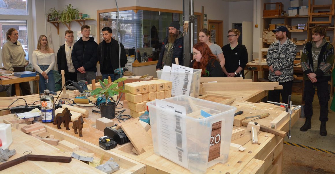Und ein weiteres Angebot machte die Lavie ihren Gästen, wie Heiko Kowski in der Werkstatt betonte. „Haben Sie keine Angst vor ausgefallenen Ideen“, beruhigte der Tischler die Studierenden, denn das sei kein Problem: „Wir können hier rund ums Holz alles lösen.“