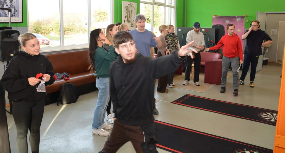 Künftig kommen die Studierenden also einmal pro Woche zu Lavie, wo dann vier Stunden Arbeit angesetzt sind. „Es geht nicht zuletzt um das Miteinander und das Ausprobieren“, verdeutlichte Korte. „Wir wollen mit viel Spaß schöne Projekte auf die Beine stellen.“ Das ging am ersten Tag schon gut los, als alle in der Boulderhalle die vier Stationen einmal durchlaufen mussten (Darten, Kicker, Tischtennis, Klettern). Dabei agierte die Lavie-Gruppe als Einweiser in die Spiele – und übernahm diese Rolle mit zunehmendem Eifer.