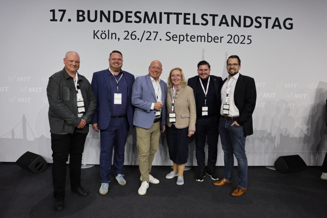 Von links: Vertraten die Braunschweiger Region auf dem Bundesmittelstandstag in Köln. Jens-Peter Drube, Felix Pschichholz, Holger Bormann, Dr. Stefanie Franke, Lysander Berg und Tobias Bopp. Foto:MIT