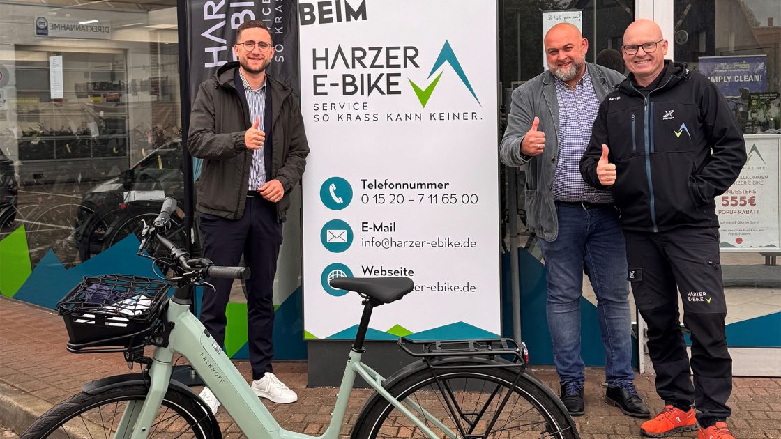 Gemeinsam mit Dennis Schoon, Teamleiter im Arbeitgeberservice bei der Agentur für Arbeit, besuchte Wirtschaftsförderer Jonas Münzebrock vor einigen Tagen den Pop-Up-Store von Harzer E-Bike im Kalten Tale.