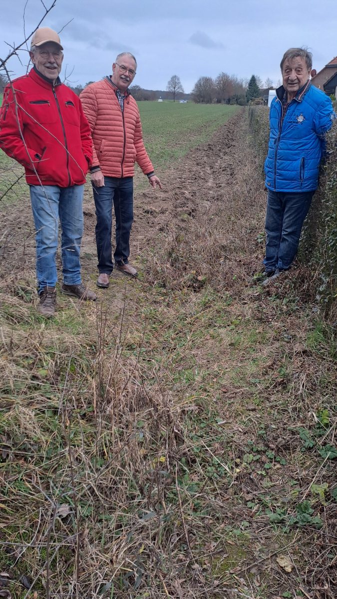Foto mit Anwohnern an der Furche (von links H. Rieckmann, H. Feder, H. Kuhn)