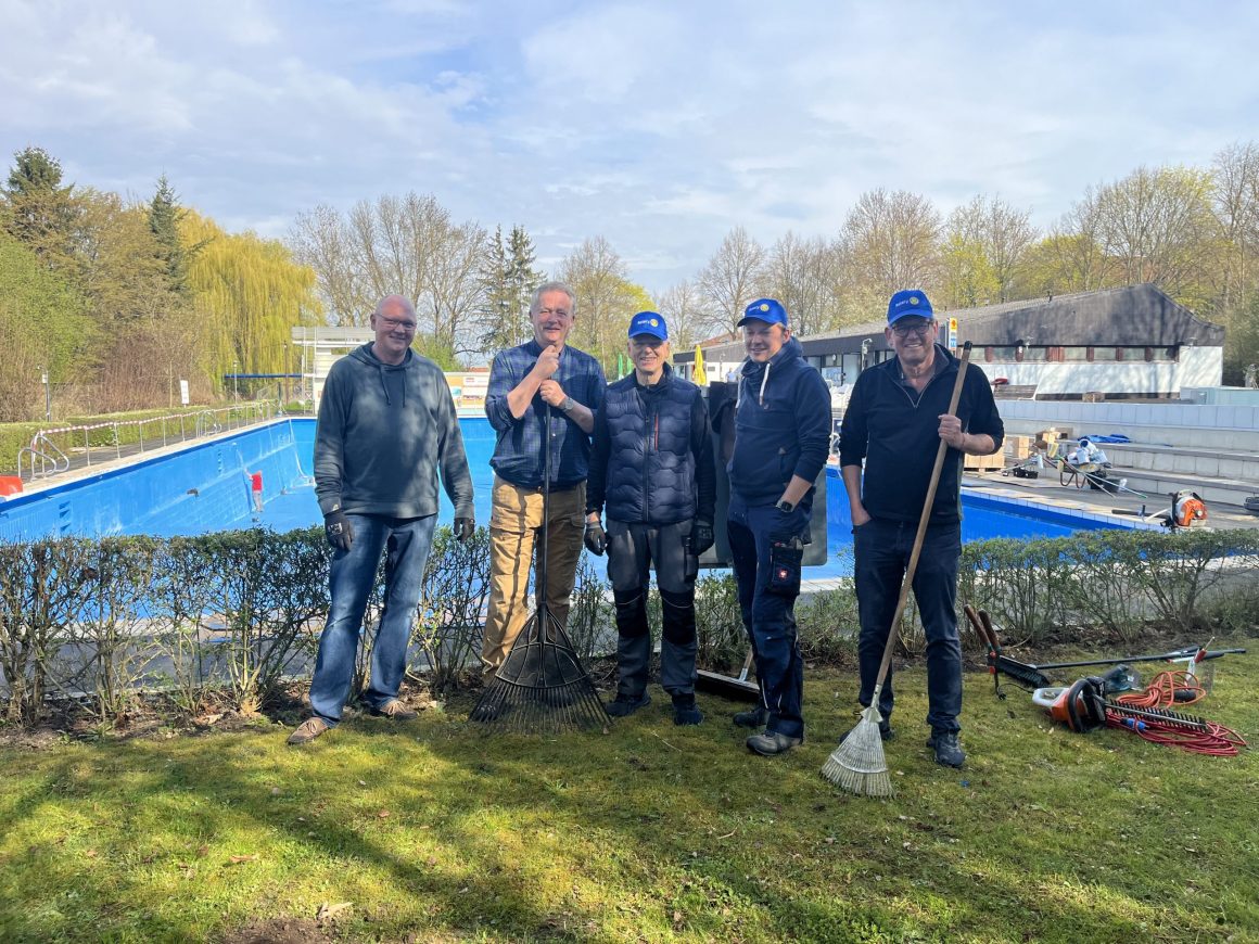 Das Freibad wird von einem privaten Verein getragen und ist in besonderem Maße auf ehrenamtliches Engagement angewiesen. Um den geplanten Saisonstart am 17. Mai sicherzustellen, standen zahlreiche Arbeiten an, bei denen die Rotarier aktiv unterstützten.