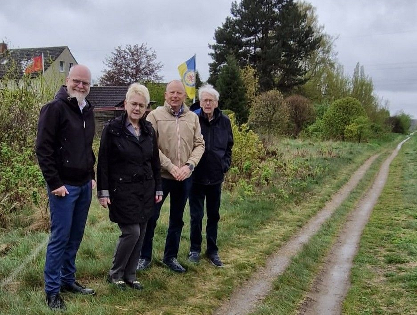 Bildunterschrift: Vor Ort am „Trampelpfad“ zwischen Weddel und Schapen: v.l. CDU-Bürgermeisterkandidat Tobias Breske, Ortsrätin Anke Ilgner, Ortsratskandidat Andreas Appel und  CDU-Ortsbürgermeisterkandidat  Michael Schwarze