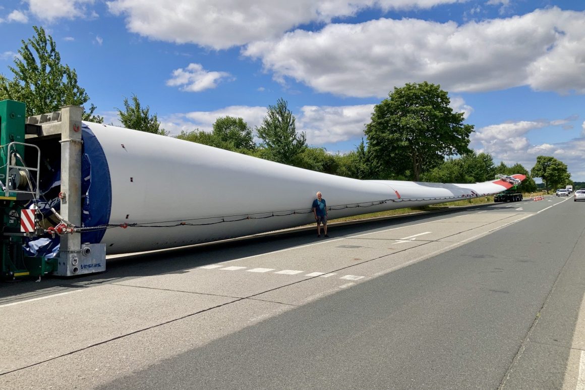Fotos (privat): Transport eines Flügels einer Windkraftanlage am Ortseingang von Sickte, Windkraftanlage vor der Asse