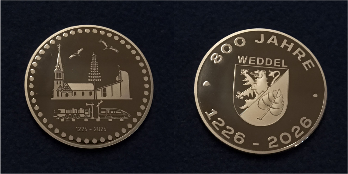 Anlässlich des 800-jährigen Jubiläums der Ortschaft Weddel im Jahr 2026 wurde im Auftrag des Ortsrates eine Silbermedaille herausgegeben. Die Medaille besteht aus 20 Gramm Feinsilber (999/1000) in der Prägequalität „Polierte Platte“. Das von Robert Philipps gestaltete Motiv zeigt unter anderem die beiden Kirchen des Ortes, die Bahnhistorie sowie den ortsbildprägenden Maibaum. In einer ersten Auflage wurden 200 Exemplare geprägt.