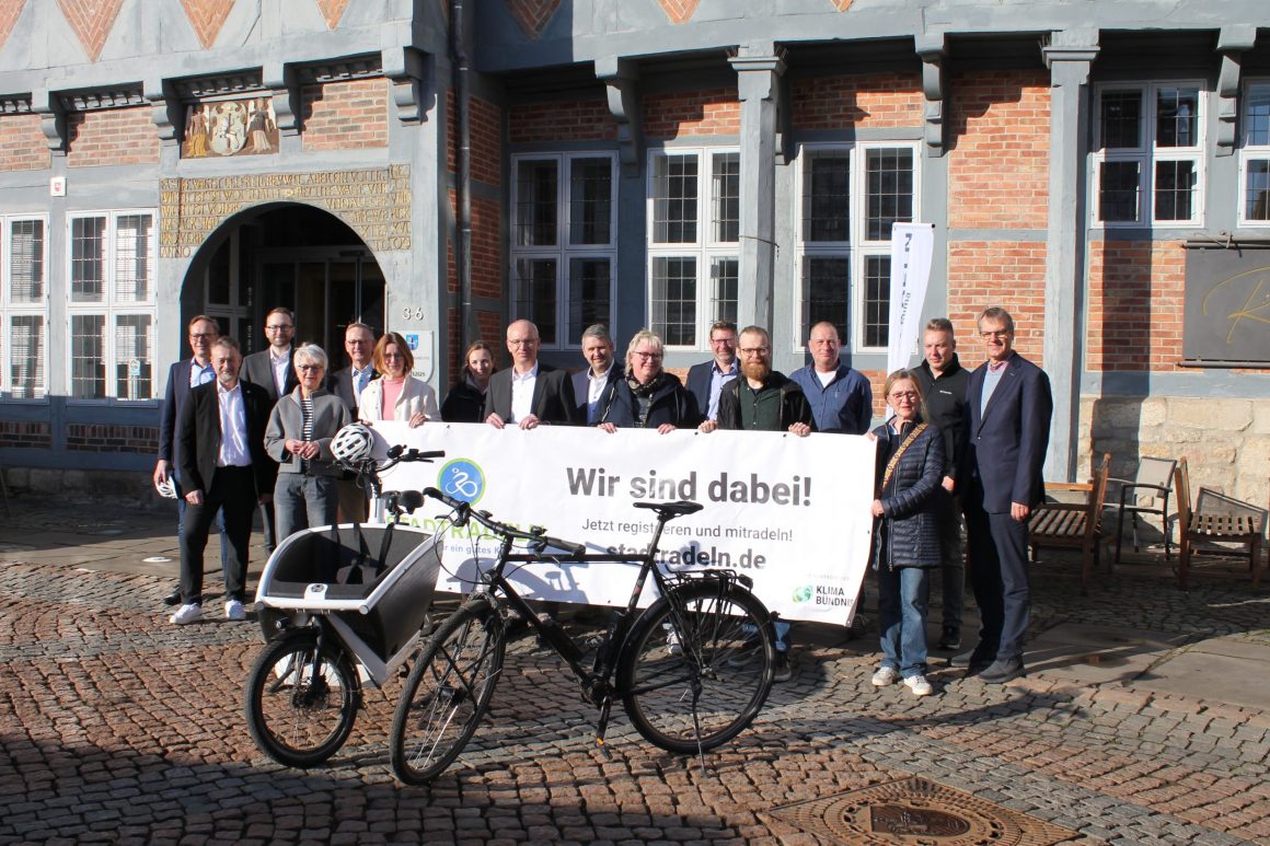 Bildunterschrift: Treten wieder gemeinsam in die Pedale und rufen zum Mitmachen beim Stadtradeln 2026 auf: Landkreis und Stadt Wolfenbüttel sowie alle Samt- und Einheitsgemeinden. Foto: Stadt Wolfenbüttel