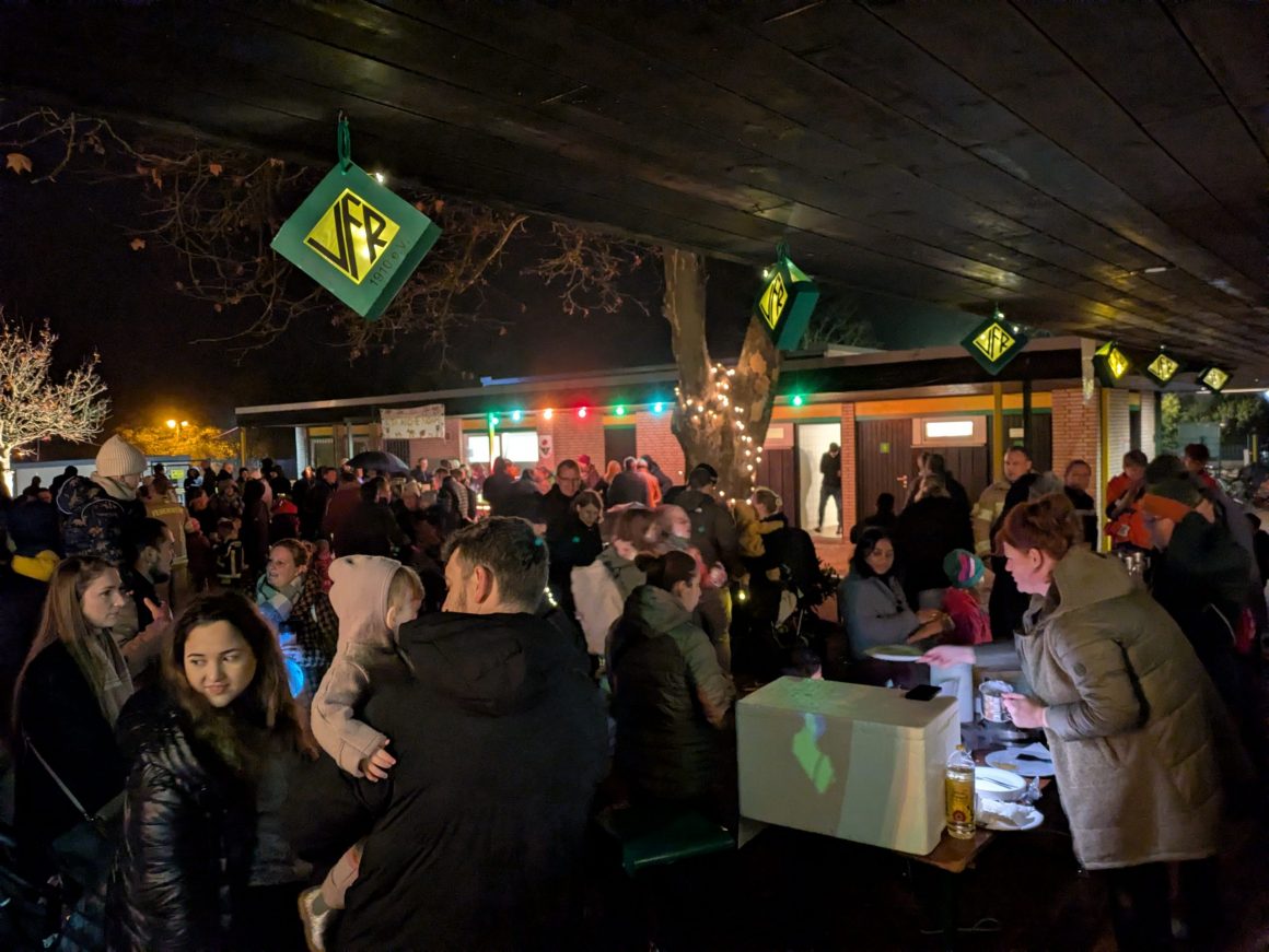 Ziel des Umzugs war der Sportplatz des VfR Weddel, der sich in ein liebevoll dekoriertes Gelände mit bunten Lichtern, flackernden Feuerkörben und stimmungsvoller Gestaltung verwandelt hatte. Dort wartete ein vielfältiges kulinarisches Angebot auf die Besucher.