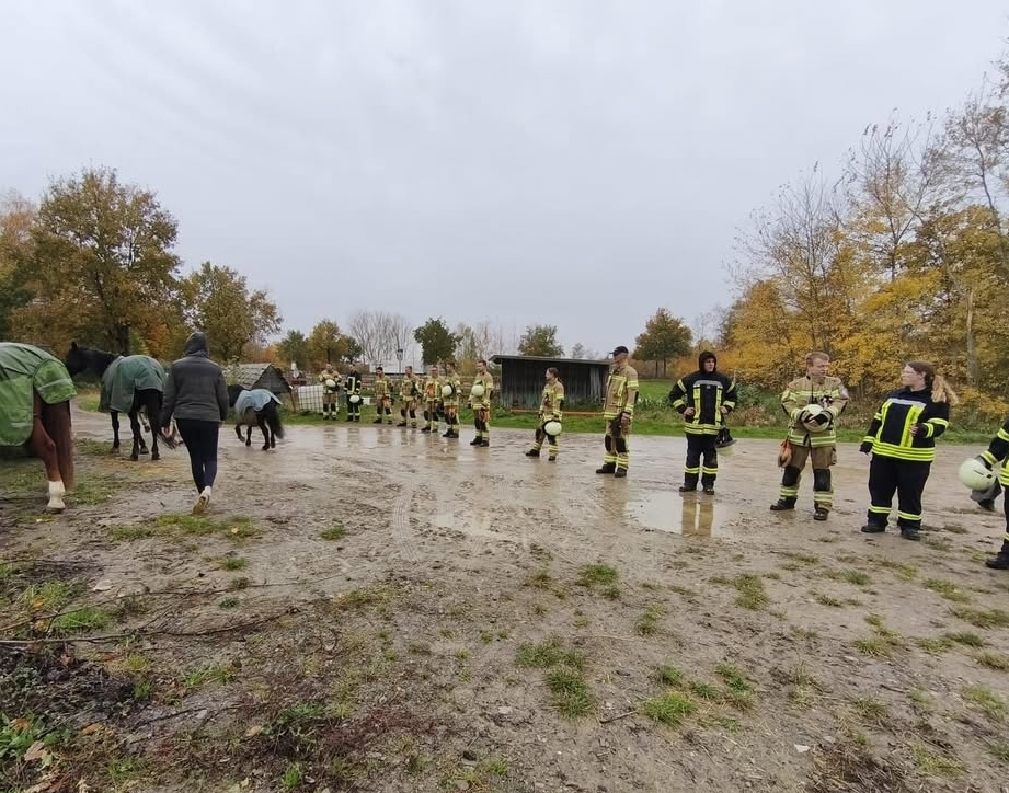 Auf Initiative des Reitvereins Lehre nahmen bei einem gemeinsamen Dienst im vergangenen November 25 Kameradinnen und Kameraden der Ortsfeuerwehren Lehre und Groß Brunsrode an einer besonderen Ausbildungseinheit teil. Ziel war es, die Reitanlage, welche aus Reithalle, Stallungen und Außengelände besteht, besser kennenzulernen und den sicheren Umgang mit Pferden im Einsatzfall zu üben.