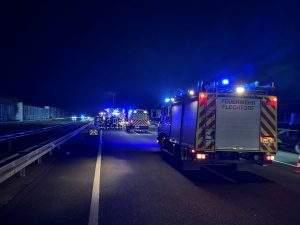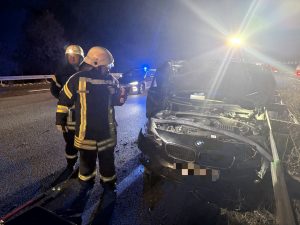 Die Feuerwehr sicherte die Einsatzstelle ab, leuchtete sie aus, reinigte die Fahrbahn von Schmutz und Trümmerteilen, und klemmte am verunfallten PKW die Fahrzeugbatterie ab.