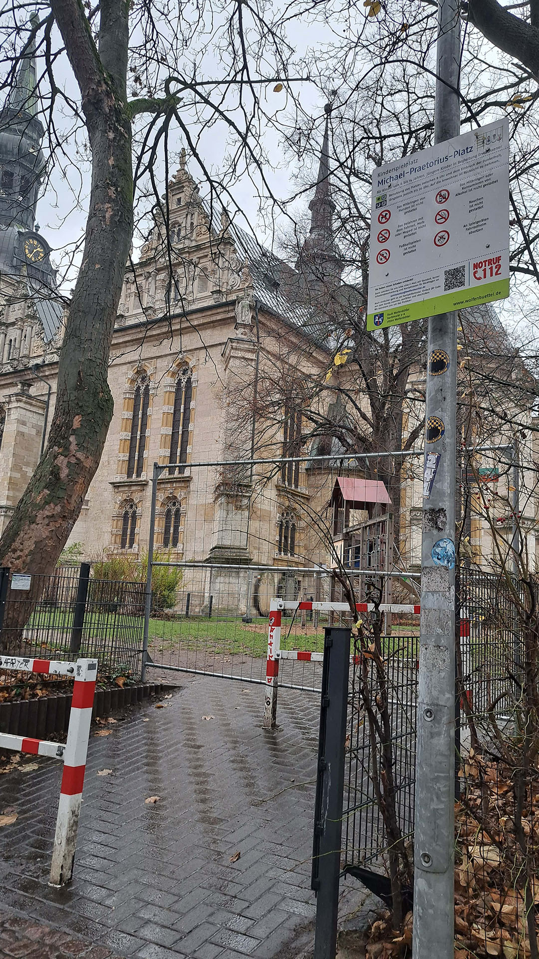 Der Spielplatz Michael-Praetorius-Platz hinter der Hauptkirche Beatae Mariae Virginis bleibt auf unbestimmte Zeit gesperrt. Unbekannte haben den Platz mit großen Mengen zerbrochener Glasflaschen hinterlassen und damit die Sicherheit spielender Kinder gefährdet.