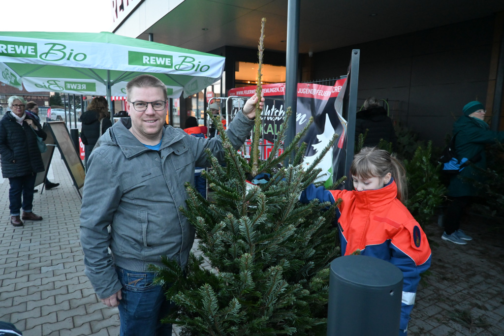 Der neue REWE Markt „Ost“ ist wieder für die Feuerwehren und die Vereine vor Ort da. Das Team um Thomas Macke organisierte wieder den Baumverkauf. Für die Jugendarbeit spendet der REWE Markt „Ost“ 5 Euro für jeden verkauften Weihnachtsbaum. Schön das die Tradition weitergeht.