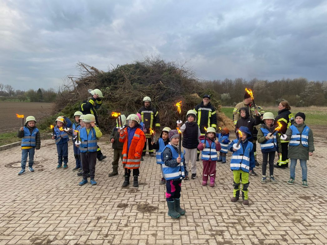Ein besonderer Moment ist jedes Jahr der Start des Feuers. Traditionell wird es von den jüngsten Hemkenrödern entzündet. Für viele der kleinen Besucher ist das einer der Höhepunkte des Abends.