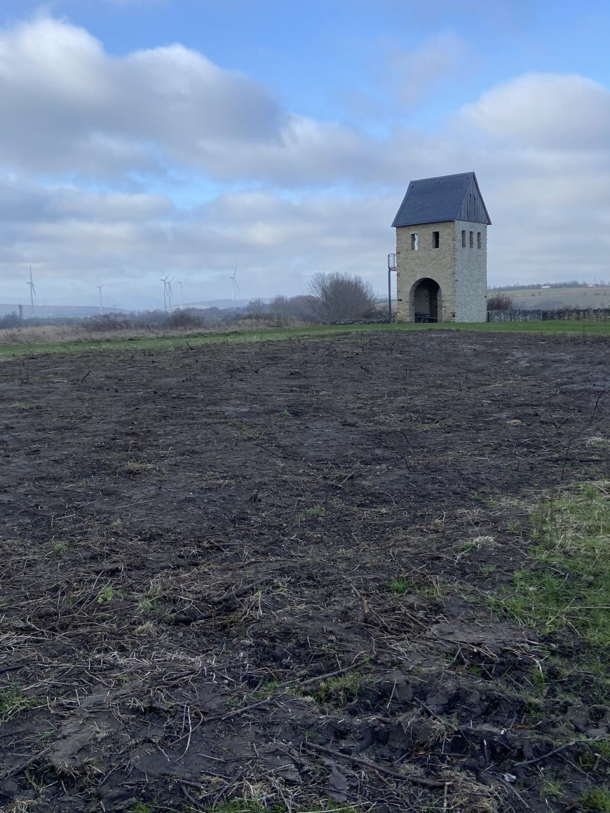 In der Kernburg wurde eine Fläche von Schwarzdorn befreit. Nach der Einsaat im Frühjahr soll dort der Grundriss eines historischen Gebäudes durch den Einbau von Sandsteinen kenntlich gemacht werden.