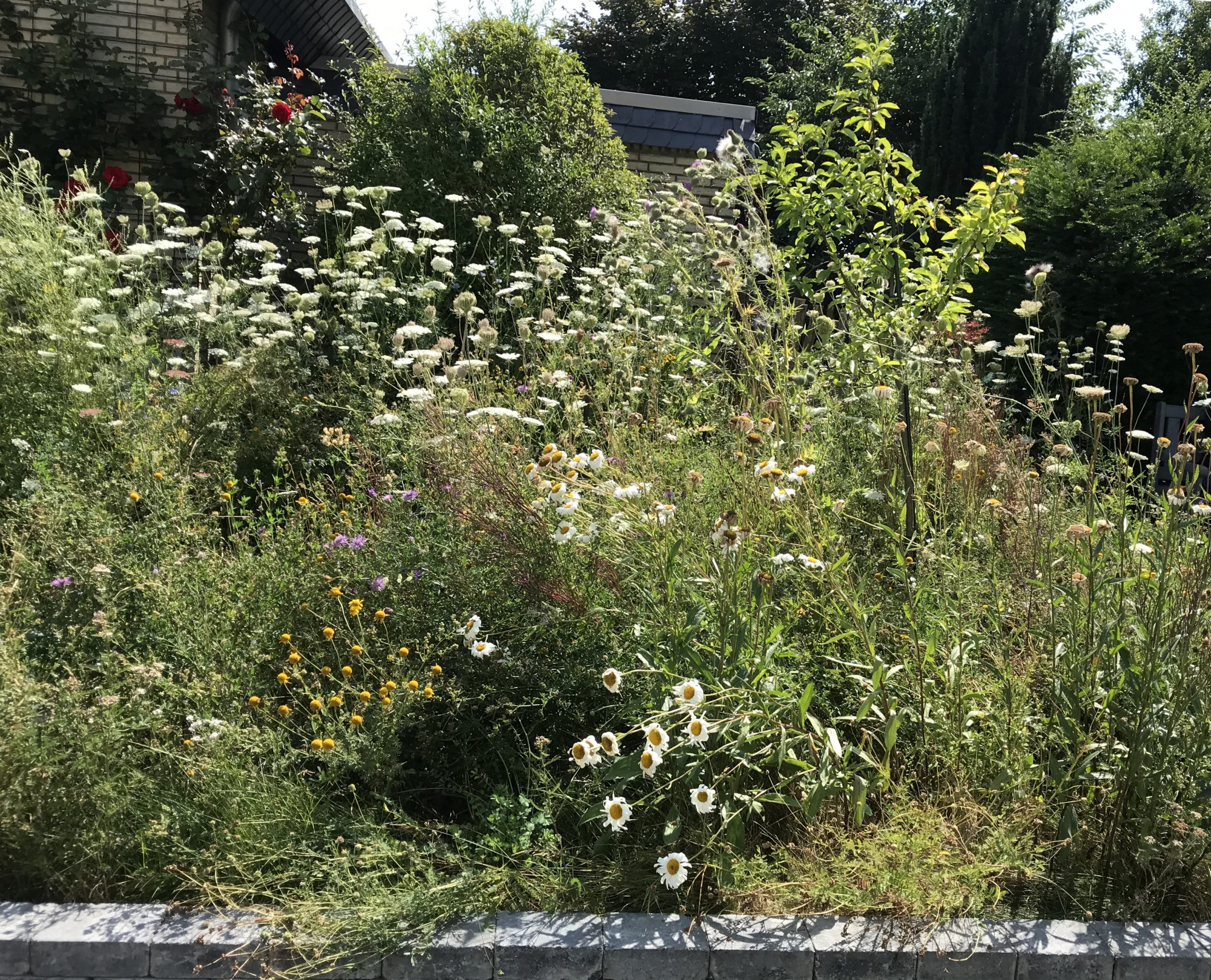 Foto: Pflegeleichte Wildblumenwiese statt Rasenfäche im Vorgarten.